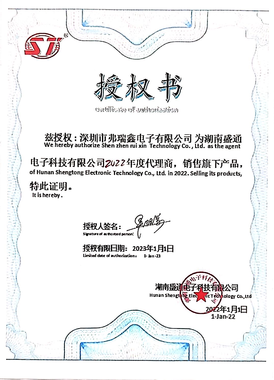 盛通代理证书